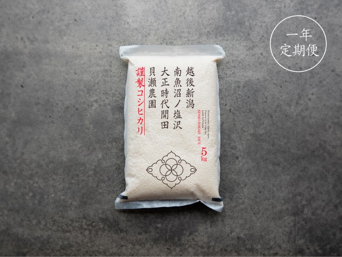 1 year1 year旧塩沢町吉山の自社圃場にて米ぬかや蜂蜜など、独自の肥料設計で丹念に作り上げたコシヒカリ。毎日食べるお米は、一定間隔で届く定期便が便利です。